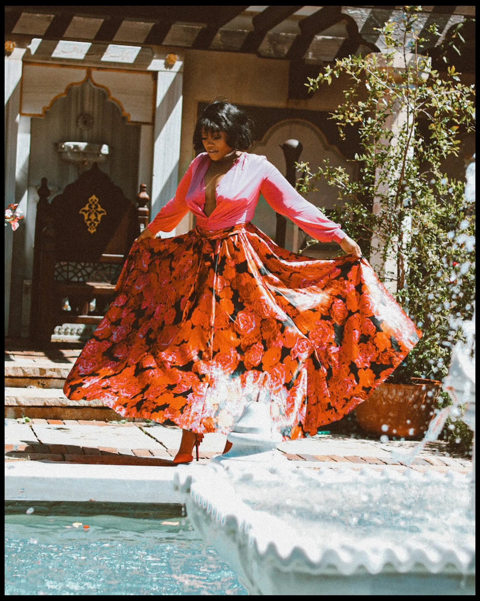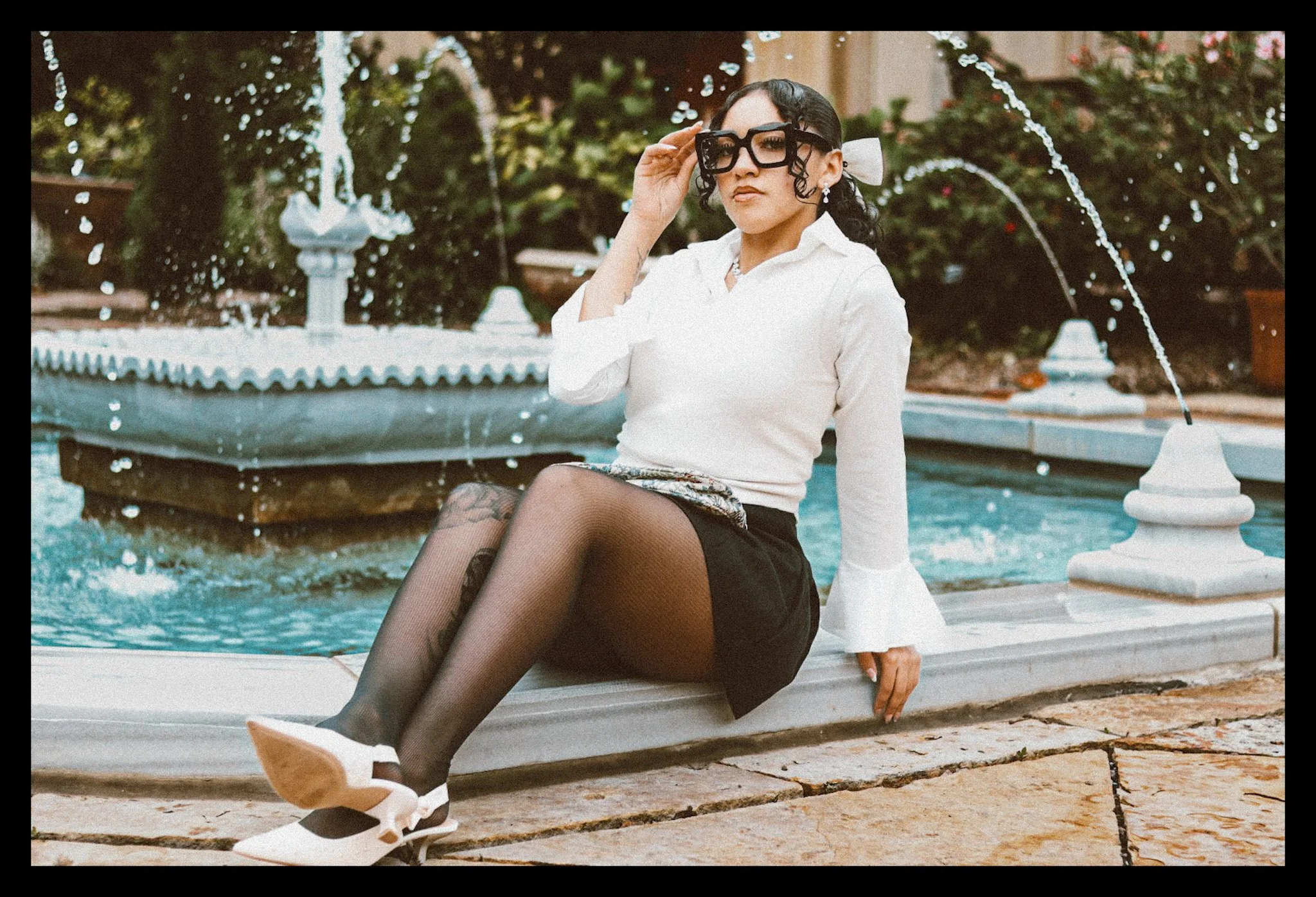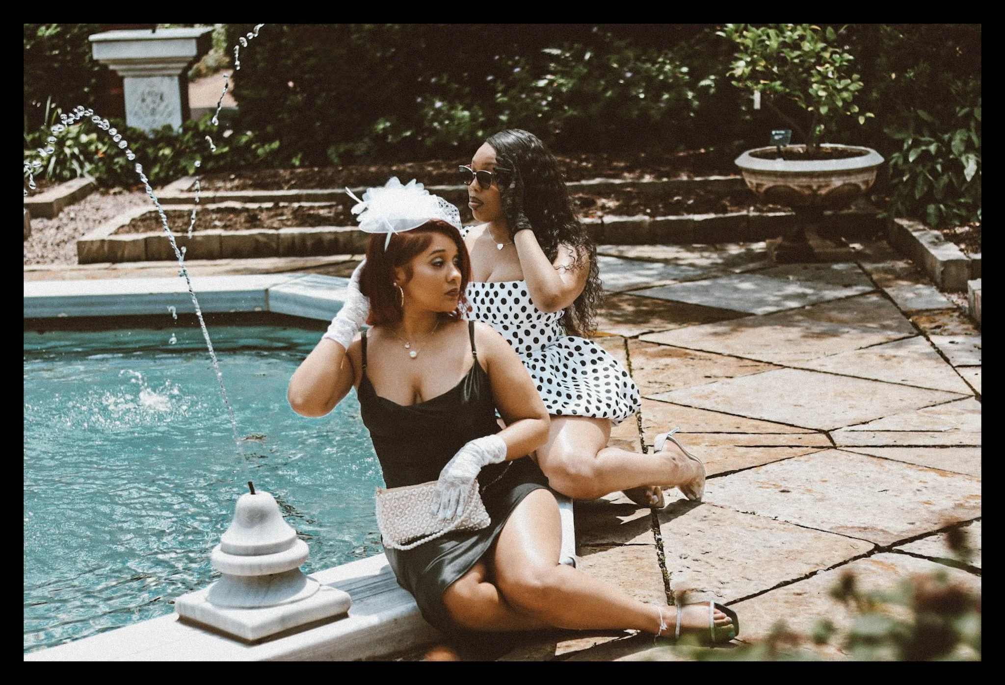 The Fountain Beaute shoot is a sun-soaked ode to timeless elegance with an urban twist. Posing gracefully by a garden fountain. I dedicated this concept to women with superior energy and I wanted them to channel vintage glamour lace gloves, pearls, satin, and polka dots all while radiating modern confidence. It’s a soft luxury moment dipped in sunlight, where classic femininity meets cool-daydream energy. From the textured clutch to the poised silhouettes, every detail tells a story of Black Beauty